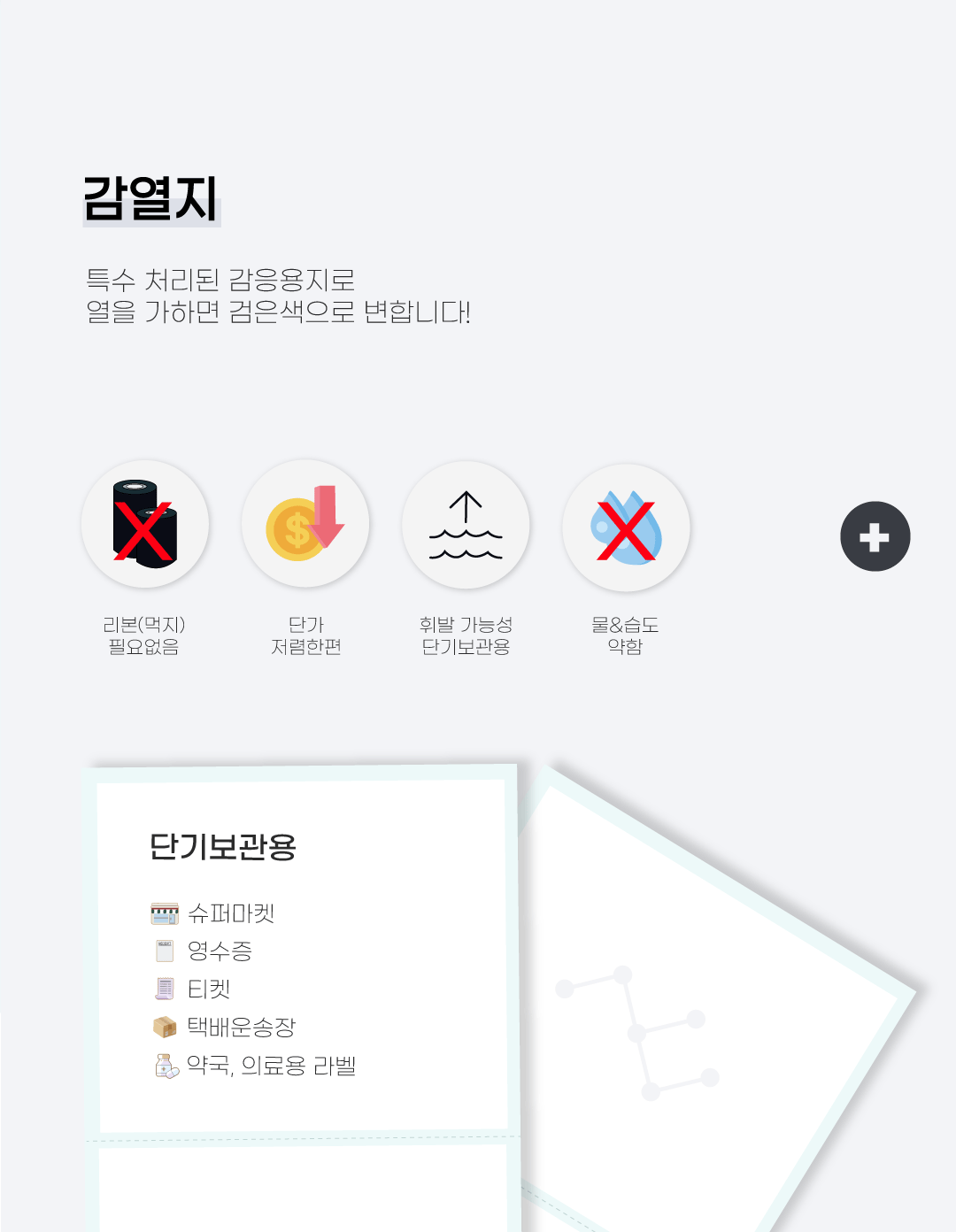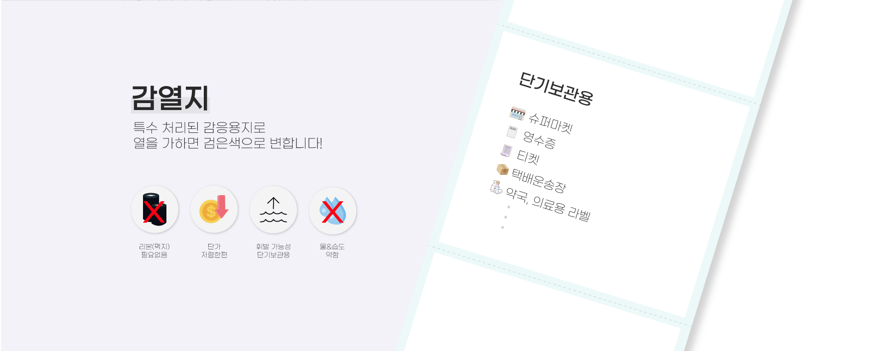 종이재질로 찢어지며 휘발 가능성이 높아 단기보관용!